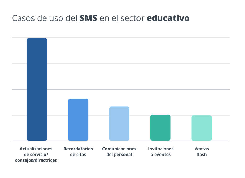 Los centros que utilizan el SMS suelen hacerlo para actualizar a los alumnos sobre servicios o consejos educativos. También para recordar horarios de exámenes por ejemplo o comunicarse con su personal. Incluso para informar sobre próximos eventos o promociones flash, ya que las escuelas de idiomas o negocios suelen realizar promociones para atraer a posibles estudiantes potenciales.